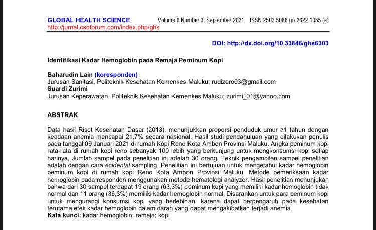Identifikasi Kadar Hemoglobin pada Remaja Peminum Kopi